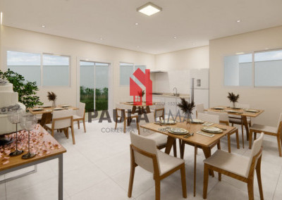 Itens de lazer: Piscina com Deck, churrasqueira, salão de festas, playground, espaço pet, academia, brinquedoteca, salão de jogos, mini quadra esportiva.