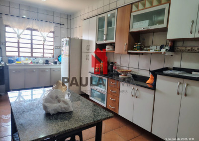 03 dormitórios, 02 salas, cozinha, wc, lavanderia, área de churrasqueira com forno, entrada para carro.